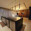 Cozinha gourmet planejada, com armários sob medida e bancada em granito;