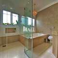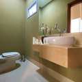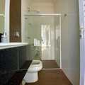 6 banheiros com gabinete e box de vidro e 1 lavabo.