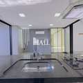 Cozinha com moveis planejados, cooktop, coifa e forno.