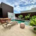 Com 221m² de área construída em um terreno de 360m², esta casa térrea conta com ambientes amplos, integrados e muito bem iluminados. Sala espaçosa para até dois ambientes, cozinha planejada com acabamento de alto padrão, área gourmet com churrasqueira, piscina aquecida e paisagismo elegante. Os quartos são confortáveis, com suíte master equipada com closet e banheiro espaçoso. A casa ainda oferece escritório, lavabo e lavanderia funcional.