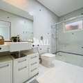 Com 595 m² de terreno e 420 m² de área construída, o imóvel dispõe de 3 suítes, sendo uma master com closet e banheira de hidromassagem, 6 banheiros, 1 lavabo, sala de estar e jantar integradas, sala de TV, cozinha com armários planejados, varanda gourmet com churrasqueira, piscina e 4 vagas de garagem. A planta foi projetada para oferecer conforto, privacidade e integração entre os ambientes.